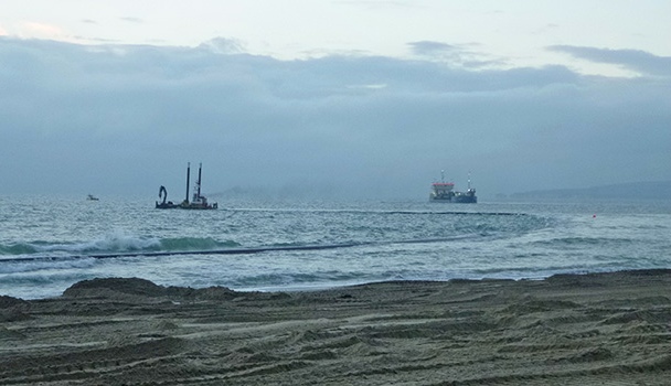 Day 17 The dredger returns to the Swash Channel to dredge for another load to bring to the beach