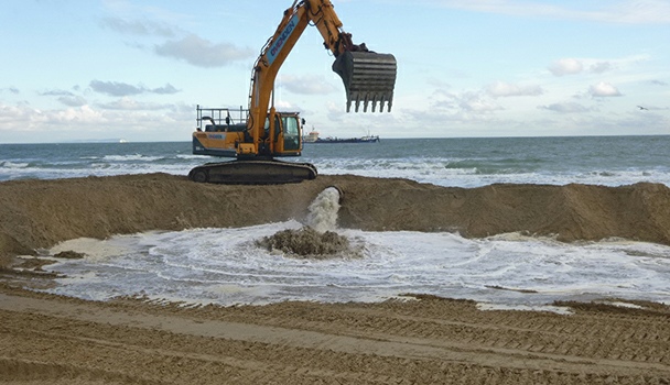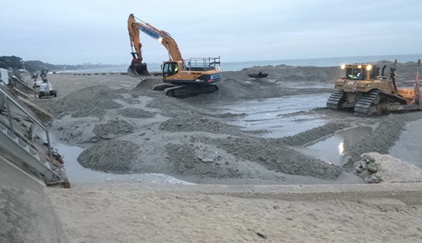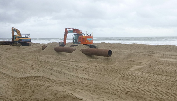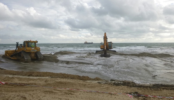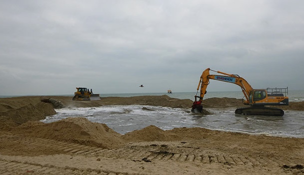 Day 17 During pumping excavators work to create a bund area to help trap the sand