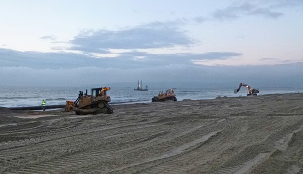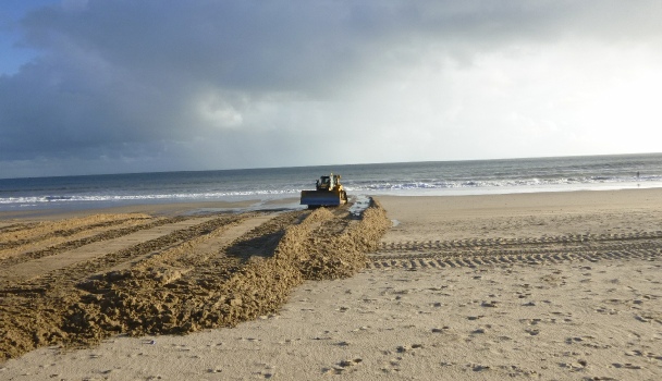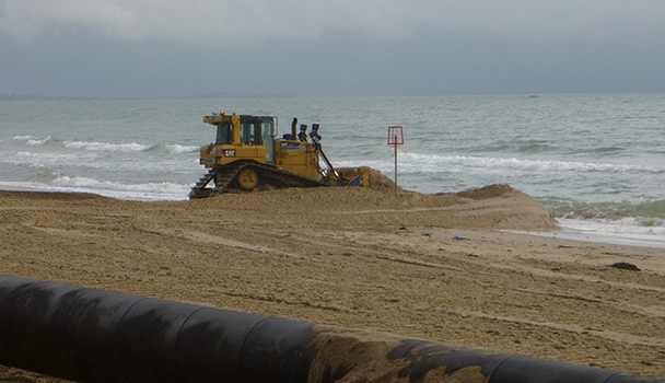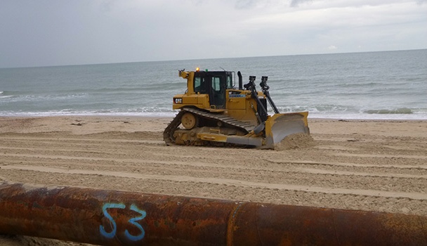 Day 14 Flattening, levelling & grading the beach so the pipe can be moved towards the sea