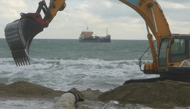 Days 23 & 24 The dredger is fixed; replenishment reaches the first combination groyne at Sandbanks