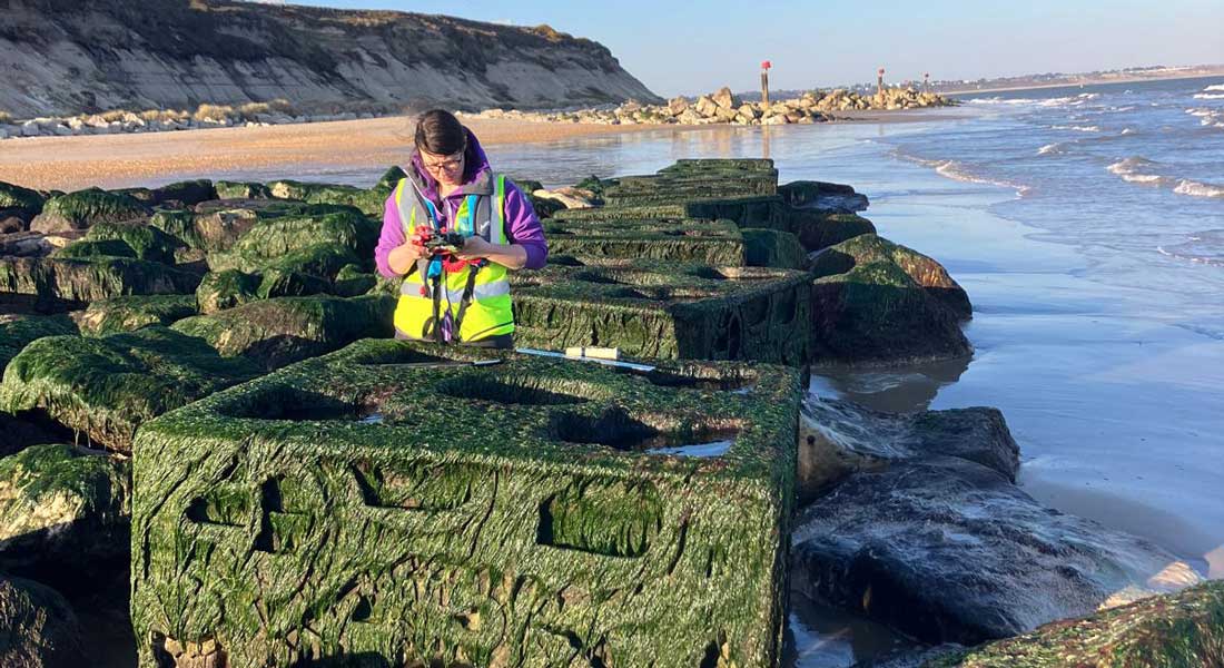 Surveying intertidal cubes at Hengistbury Head © A Hall Marine